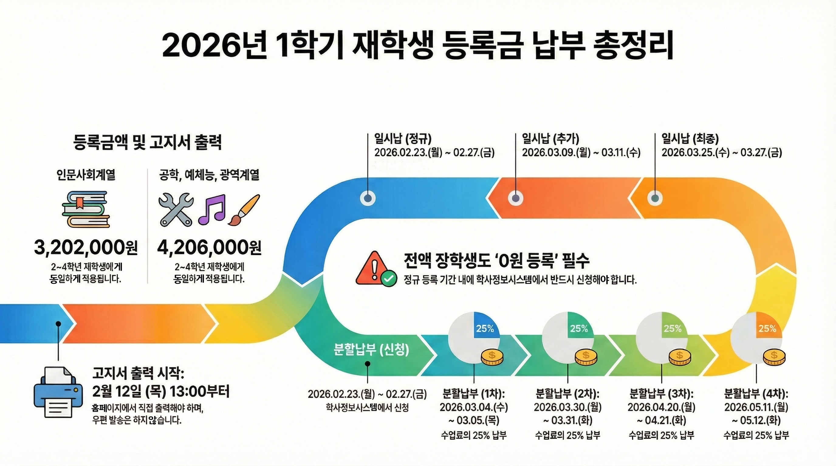 2026학년도 1학기 재학생 등록금 납부 일정 안내